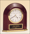 Rosewood stained piano finish arched table clock with solid brass base and three hand movement.