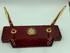 Other insignia, emblems and logos are available. Can be personalized. Call us or email us for details. Double pen set on a rosewood stained piano finish base. Size: 3-3/4" x 9"