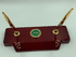 Other insignia, emblems and logos are available. Can be personalized. Call us or email us for details. Double pen set on a rosewood stained piano finish base. Size: 3-3/4" x 9"