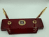 Other insignia, emblems and logos are available. Can be personalized. Call us or email us for details. Double pen set on a rosewood stained piano finish base. Size: 3-3/4" x 9"