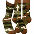 A pair of socks featuring "Awesome Veteran" sentiment with camouflage pattern. One size fits most. Cotton, nylon and spandex. Socks come attached to header card with plastic hanger for ease of display.