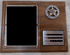 Made in USA, 8 inch by 10 inch walnut plaque with Badge logo and Acrylic cover. Send us email for more details or questions.