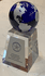 Crystal trophy with blue globe. Globe is 2-1/4 in diameter an attached to the base. 2-5/8 " x 5-1/4