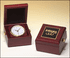 Hand rubbed mahogany finish case, metal goldtone knobs and velour lined lid. 3-1/2 " x 3-1/2 " Clock movements are guaranteed for life. Laser engravable plate(s). Individually gift boxed CAN BE PERSONALIZED