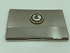 Silver Card Case with Round Plate on Straight Line Patterns on the Cover.