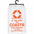 A cotton dish towel with red lettering and an "If You Love A Coastie Raise Your Glass If Not Raise Your Standards" sentiment and an lifesaver ring illustration. Machine-washable. Dimensions: 28" x 28" Material: Cotton