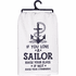 A cotton dish towel with red lettering and an "If You Love A Sailor Raise Your Glass If Not Raise Your Standards" sentiment and an anchor illustration. Machine-washable. Dimensions: 28" x 28" Material: Cotton