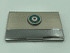 Silver Card Case with Round Plate on Straight Line Patterns on the Cover.