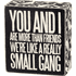 A classic black and white wooden box sign featuring a distressed "You And I Are More Than Friends - We're Like A Really Small Gang" sentiment with floral trim designs. Easy to hang or can free-stand alone.
